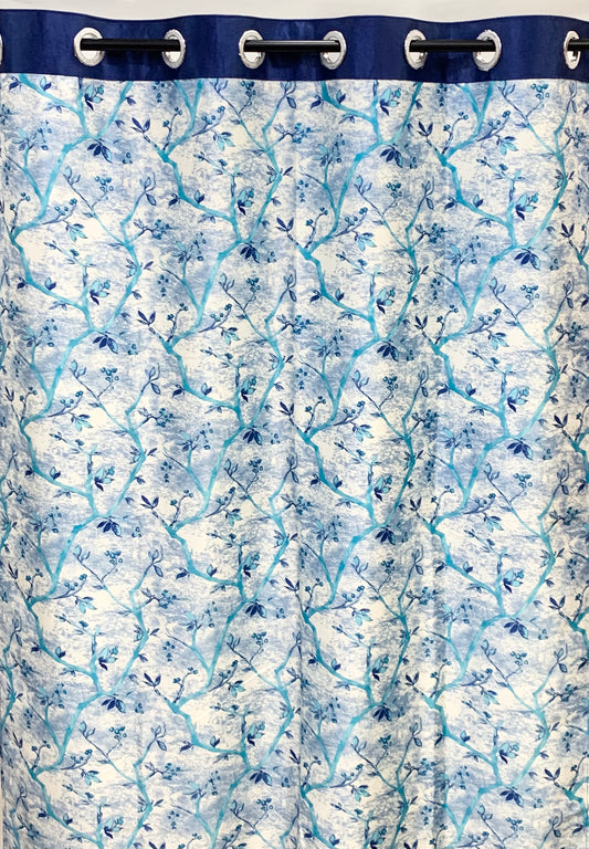 Swiss Magnolia Printed Curtain - Blue (Pack of 1)
